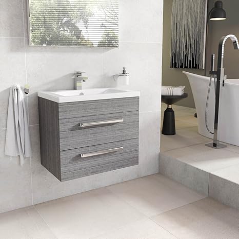 The Bath People Newton Grey Oak Vanity Unit Bathroom Storage Wh 600mm Vanity Unit Ceramic Basin